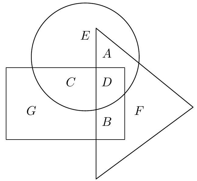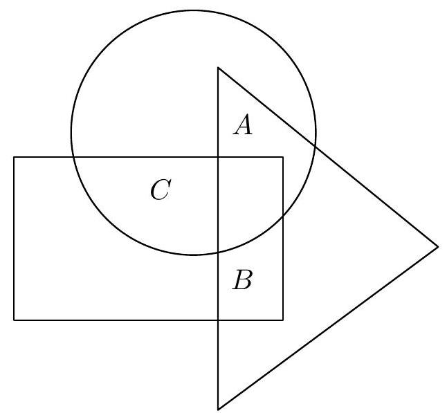 ❓:In the diagram with seven cells, draw stars so that all the following conditions are met:1. There are a total of 21 stars.2. Each cell contains at least one star.3. The cells labeled A, B, C together contain 8 stars.4. The cells labeled A and B together contain fewer stars than the cell labeled C.5. The cell labeled B contains more stars than the cell labeled A.6. The circle contains a total of 15 stars, the triangle contains a total of 12 stars, and the rectangle contains a total of 14 stars.(E. Semerádová)Hint. First determine the number of stars in the cells A, B, C.