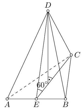 ❓:## Task 4 - 100924A regular right triangular pyramid is a pyramid whose base is an equilateral triangle and whose foot of the height coincides with the centroid of the base. In the regular pyramid with vertices A, B, C, D and apex D, the inclination angle between each of the three side faces and the base is 60^{circ}. The base has a side length of a.Calculate the volume V of this pyramid!Note: If two planes have a common edge and P is a point on this edge different from the endpoints, then the angle formed by two perpendicular segments erected at P on the edge and lying in the two planes is equal to the inclination angle of the two planes to each other.