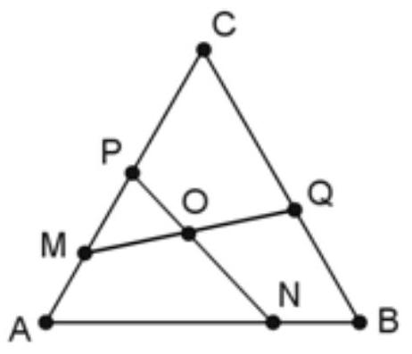 🧠:[<think>Okay, so I have this problem about an equilateral triangle ABC with side length a. Points M, N, P, Q are positioned in some way, and it's given that MA + AN = PC + CQ = a. I need to find the measure of angle NOQ. Hmm, let me try to visualize the figure first. Since it's an equilateral triangle, all sides are equal, and all angles are 60 degrees each. The points M, N, P, Q are somewhere on the sides, but the figure isn't provided, so I need to figure out their positions based on the given information.The problem states that MA + AN = a and PC + CQ = a. Let me break this down. Starting with MA + AN = a. Since the side length is a, MA and AN must be segments along the sides of the triangle. Let me assume that point M is on side AB, and point N is on side AC. Then MA is the distance from M to A, and AN is the distance from A to N. Wait, but if MA is from M to A and AN is from A to N, then MA + AN would be the sum of two segments starting at A. That doesn't make much sense unless M is on one side and N is on another. Maybe M is on AB and N is on AC? So MA is the distance from M to A along AB, and AN is the distance from A to N along AC. Then MA + AN would be the sum of those two segments. Since AB and AC are both length a, MA + AN = a. So if MA is some length x, then AN would be a - x. Similarly, PC + CQ = a. Let's say P is on BC and Q is on AC. Then PC is the distance from P to C along BC, and CQ is from C to Q along AC. So PC + CQ = a. Similarly, if PC is y, then CQ is a - y.But maybe the points are on different sides. Let me think again. Since it's an equilateral triangle, the notation might be such that the points are moving around the triangle. Let me try to assign coordinates to make it easier. Let me place the triangle ABC with point A at the origin (0,0), point B at (a, 0), and point C at (a/2, (a√3)/2). That way, the triangle is equilateral with side length a. Then the sides are AB from (0,0) to (a,0), AC from (0,0) to (a/2, (a√3)/2), and BC from (a,0) to (a/2, (a√3)/2).Given that MA + AN = a. Let me assume M is on AB and N is on AC. Let me parameterize the positions. Let me let MA = x, so M is at (x, 0) on AB. Then AN must be a - x. Since AN is along AC, which goes from A (0,0) to C (a/2, (a√3)/2). So if AN = a - x, then the coordinates of N can be found by moving a distance of a - x from A along AC. But the total length of AC is a, so moving a - x along AC would be beyond point C? Wait, that can't be. Wait, AC has length a, so moving a distance of a - x along AC from A would land us at point C when a - x = a, i.e., x = 0. But x is MA, so if x is 0, M is at A. Then AN would be a - 0 = a, but AN is along AC, which is length a, so N would be at C. But then MA + AN = 0 + a = a, which satisfies the condition. But that's a trivial case where M is A and N is C. But the problem probably refers to non-degenerate points. Hmm, maybe I misunderstood the positions.Alternatively, maybe MA and AN are along different sides. Wait, MA is from M to A, and AN is from A to N. If M is on AB and N is on AC, then MA is along AB, and AN is along AC. So MA + AN is the sum of two segments starting at A. But in that case, MA + AN can be more than a? Wait, but MA is a segment from M to A, so MA is the length from M to A. If M is on AB, then MA would be the distance from M to A along AB. Similarly, AN is the distance from A to N along AC. So if MA + AN = a, then since AB is length a, MA can be from 0 to a. Similarly, AN can be from 0 to a. But if MA is x, then AN must be a - x. So N would be located at a distance a - x from A along AC. But the coordinates of N would be ((a - x)*(a/2)/a, (a - x)*((a√3)/2)/a) = ((a - x)/2, (a - x)√3/2). Similarly, point M is at (x, 0) on AB.Similarly, PC + CQ = a. Let's suppose P is on BC and Q is on AC. Then PC is the distance from P to C along BC, and CQ is from C to Q along AC. So PC = y, then CQ = a - y. So point P is located along BC at a distance y from C. Let me parameterize BC. Since BC goes from (a, 0) to (a/2, (a√3)/2). The length of BC is a. So moving a distance y from C towards B would place P at coordinates (a/2 + y*(a/2)/a, (a√3)/2 - y*((a√3)/2)/a) = (a/2 + y/2, (a√3)/2 - (y√3)/2). Similarly, point Q is located along AC at a distance a - y from C. Wait, AC is from A (0,0) to C (a/2, (a√3)/2). So moving from C towards A a distance of a - y would place Q beyond A if a - y > a, which would mean y is negative, which isn't possible. Wait, that doesn't make sense. Wait, CQ is from C to Q along AC. If CQ is a - y, then since AC is length a, Q would be located at a distance a - y from C towards A. So starting at C, moving towards A by a - y. Therefore, the coordinates of Q would be (a/2 - (a - y)*(a/2)/a, (a√3)/2 - (a - y)*((a√3)/2)/a) = (a/2 - (a - y)/2, (a√3)/2 - (a - y)√3/2) = ( (a - (a - y))/2, (a√3 - (a - y)√3)/2 ) = ( y/2, y√3/2 ).Wait, that's interesting. So Q is at (y/2, y√3/2 ). Similarly, if we have point N on AC at a distance a - x from A, which would be at ((a - x)/2, (a - x)√3/2 ). So both N and Q are on AC, but N is closer to A and Q is closer to C? Wait, maybe not. Wait, N is at a distance a - x from A, so if x is between 0 and a, then a - x is between a and 0. Wait, if x is 0, then N is at a distance a from A, which is point C. If x is a, then N is at a distance 0 from A, which is point A. So N moves from C to A as x increases from 0 to a. Similarly, Q is at a distance a - y from C towards A. If y is 0, Q is at C. If y is a, Q is at distance 0 from C, which would be beyond A if a - y is negative. Wait, but since y is between 0 and a, a - y is between a and 0, so Q moves from C to A as y increases from 0 to a.Wait, but then both N and Q are on AC? But in the problem statement, they are different points. Maybe they are on different sides? Maybe Q is on a different side? Wait, the problem says PC + CQ = a. If PC is on BC and CQ is on AC, then Q is on AC. Similarly, MA + AN = a with M on AB and N on AC. Then
