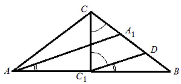 ❓:Problem 5. Determine the angles in the isosceles triangle ABC, in which the height dropped to the base is half the length of the angle bisector of one of the angles at the base.